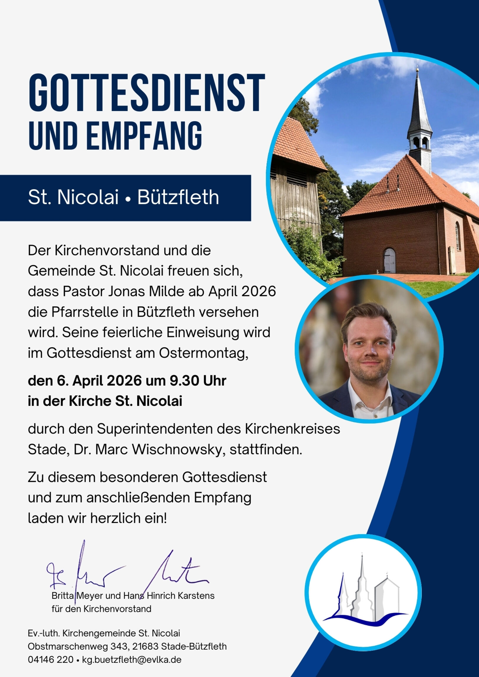 Gottesdienste in der St. Nicolai Kirche So, 8. März 2026 09:30 Uhr Gottesdienst in St. Nicolai So, 15. März 2026 09:30 Uhr Gottesdienst in St. Nicolai So, 22. März 2026 09:30 Uhr Gottesdienst in St. Nicolai So, 29. März 2026 09:30 Uhr Gottesdienst in St. Nicolai Do, 2. April 2026 18:00 Uhr Gottesdienst in St. Nicolai mit Tischabendmahl Terminübersichtsseite