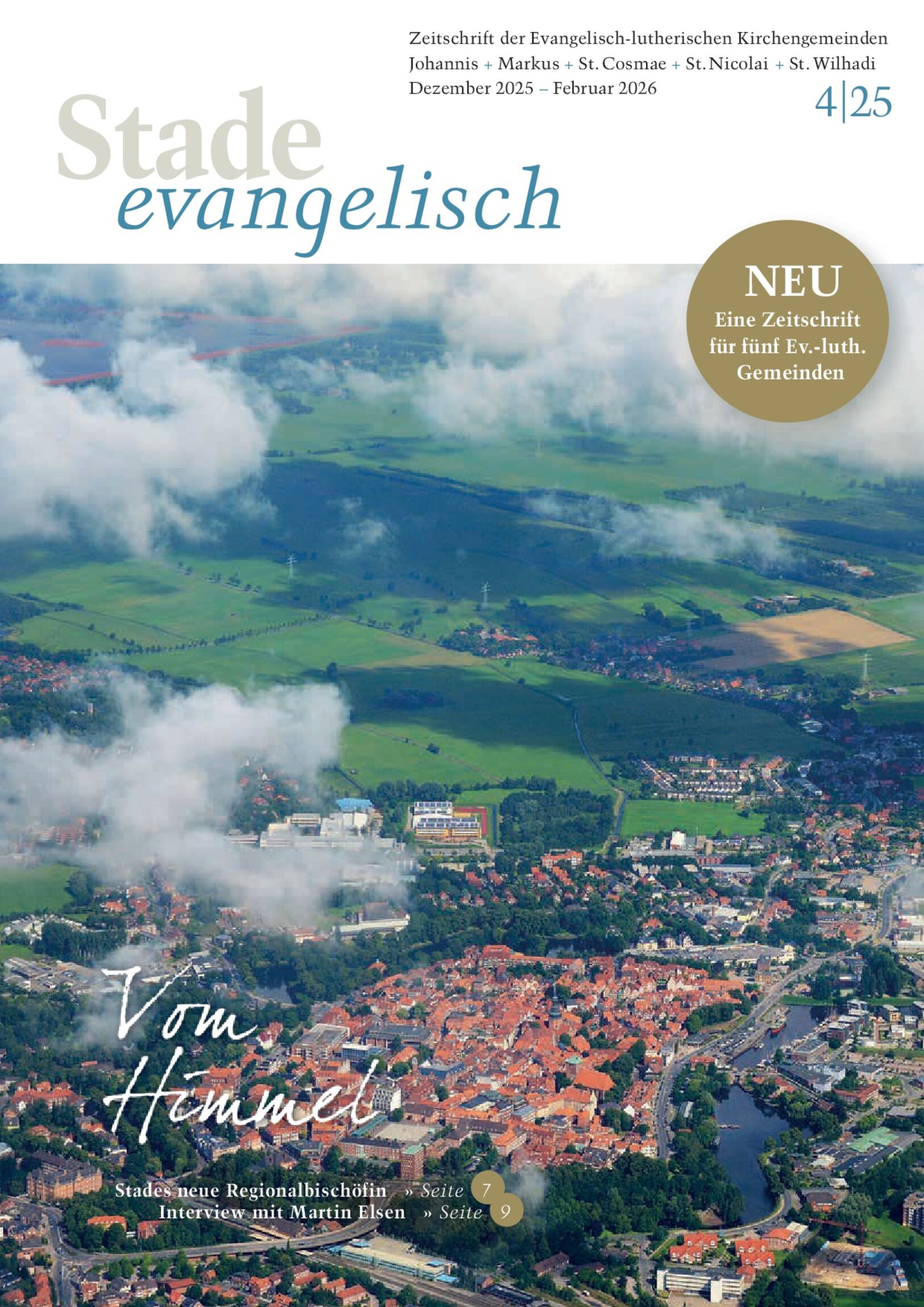 Die fünf evangelisch-lutherischen Kirchengemeinden in Stade geben zukünftig einen gemeinsamen Gemeindebrief heraus, der die bisherigen Veröffentlichungen Rund um Johannis, markuseinsichten und die Stader Kirchenzeitung ablöst. Wir informieren und berichten gemeinsam über aktuelle kirchliche Themen. Wir kommunizieren stadtweit unsere Termine und laden Sie herzlich zu allen Gottesdiensten und Veranstaltungen, Kreisen und Gruppen ein.